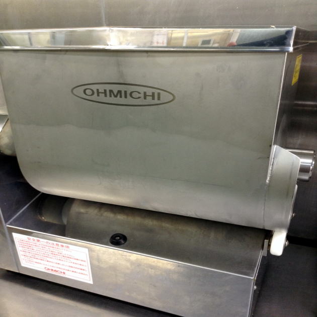 量が少ないときは手で混ぜます(手が痛いくらい冷たくなります)が、量が多いときはこんな機械で混ぜます。
