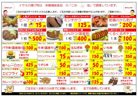 おいしいイサミのコロッケやミンチカツなどのお惣菜とお弁当。